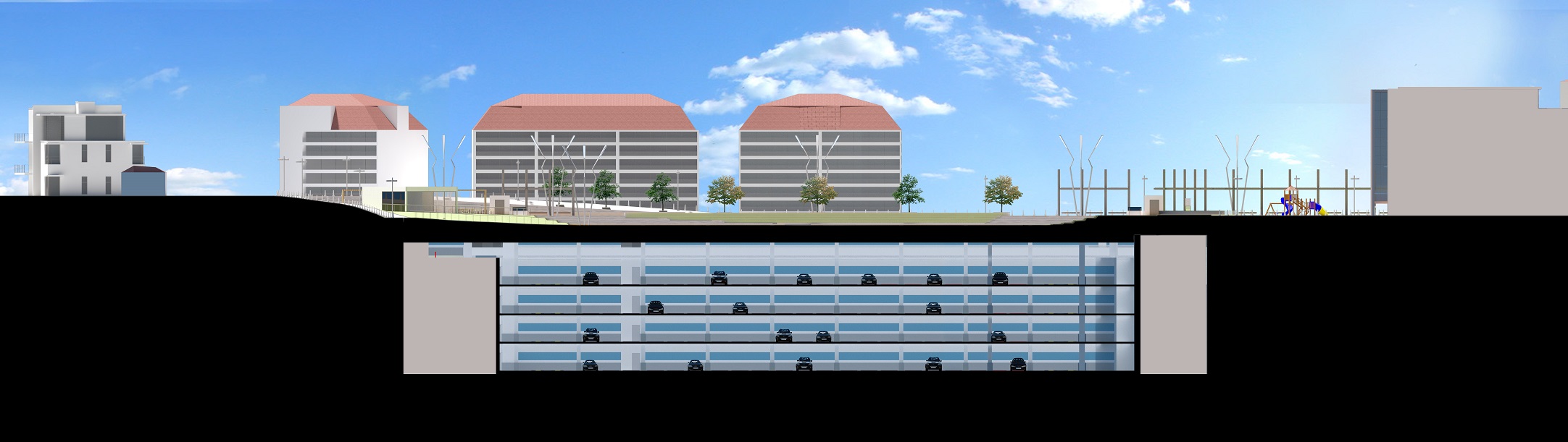 The project area is located in Pendik District, Kurtköy District, at the intersection of Üstün Street, Karacaoğlan Street and Milli Street. The project consists of a parking area on the ground and parking areas in the underground area reached by a ramp. In order to use the open area as a park and to provide additional parking lots, underground parking has been planned. The parking lot structure has an area of approximately 8038.88 m² and consists of 5 floors, 1 ground floor and 4 basement floors. The floor construction area is 8038.88 m². The total construction area is 35580.51 m². The height of the ground floor is planned as 4.10m from the floor to the floor and the other floors as 3.60m. The capacity of the car park is 837 cars. 5% of the number of parking lots is planned as disabled parking lot and 2% electric parking lot. The building is designed as a cafeteria and parking area. Stairs and elevators reach this floor. The stairs on the ground from this floor are terminated at parapet height.
